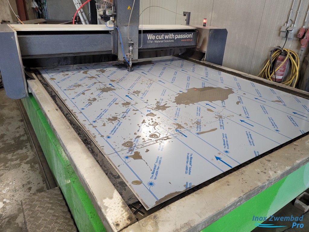 Onze platen worden gesneden middels een watersnijder, dit is zand en water onder hoge druk. Er is geen hoge temperatuur als neveneffect.